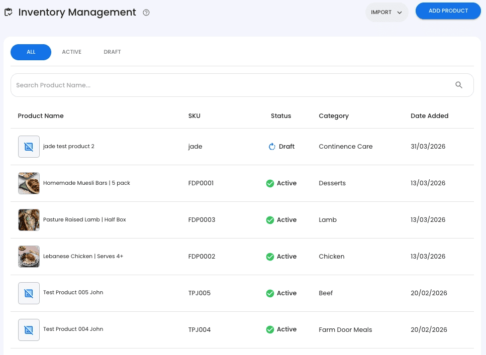 Manage your stock and inventory directly in the app. Know what you have, what's running low, and what needs to be reordered, all in one place.
