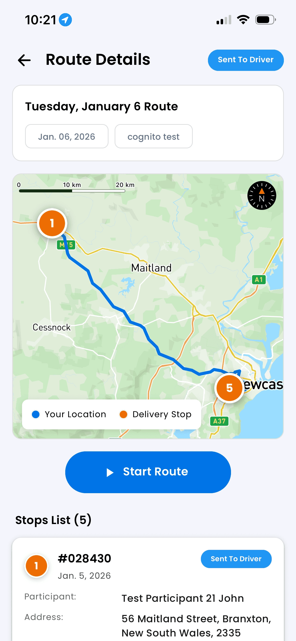 Your drivers download the MyDeliveries app on their phone and start their run from wherever they are. The route is ready and waiting for them.