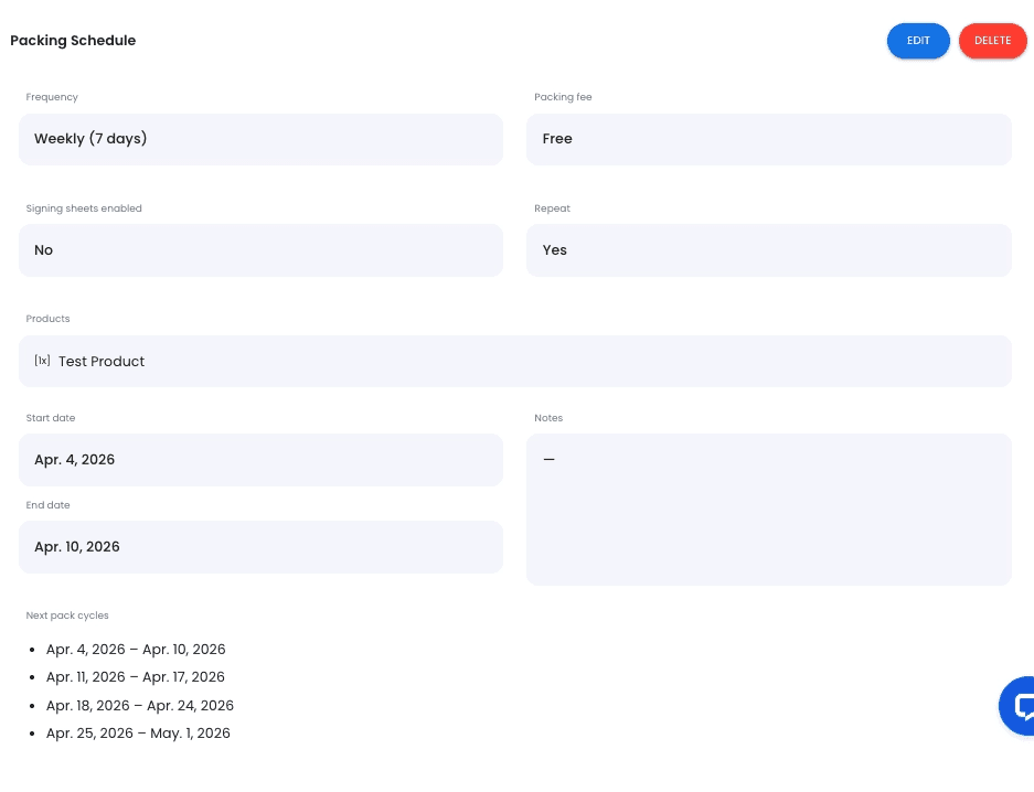 Create customer profiles and set up their DAA packing schedule and delivery preferences from the start. Everything is in one place for your team to reference.