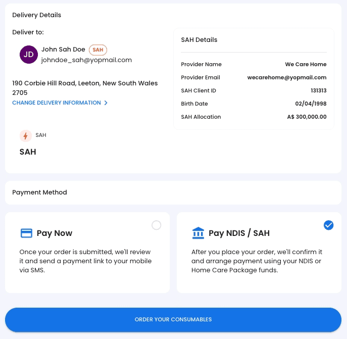 Order consumables on behalf of your participants in just a few clicks. Set up repeating orders on a schedule so nothing gets missed, even when it gets busy.