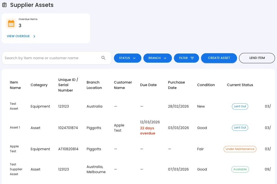 Track all equipment in the app and see exactly who's renting what. No more paper logs or chasing records. Your logbook is always up to date.